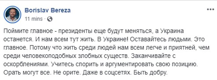 Правда, одновременно в соцсетях отметили, что вчерашние выборы – лучшее подтверждение демократии в Украине, и напомнили, что даже такое важное событие, как избрание нового президента, не стоит того, чтобы переходить на взаимные оскорбления.