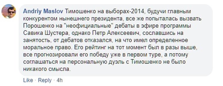 А многие пользователи напомнили, что в 2014 году и сам Порошенко отказался подискутировать в прямом эфире со своим главным конкурентом на предыдущих выборах – Юлией Тимошенко.