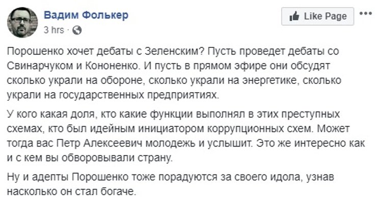 Как отреагировал на такое предложение Игорь Коломойский – неизвестно. А вот Виктор Медведчук отдал должное "умникам из команды Зеленского", и заявил, что готов дебатировать с кем угодно, но Порошенко представлять не будет.