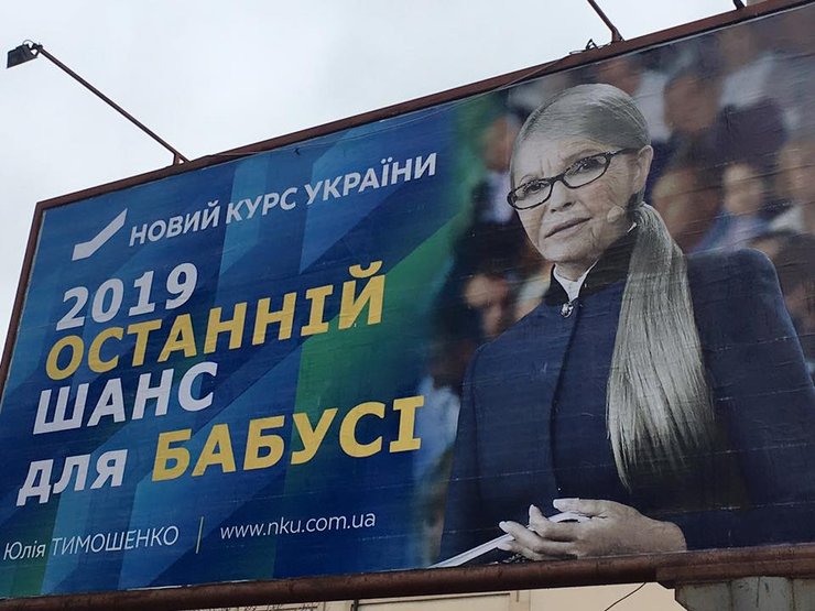 Добавим, что в ноябре прошлого года неоднозначную реакцию общества вызвала антиреклама Юлии Тимошенко. Ее искусственно состарили и подписали: "2019 – последний шанс для бабушки".