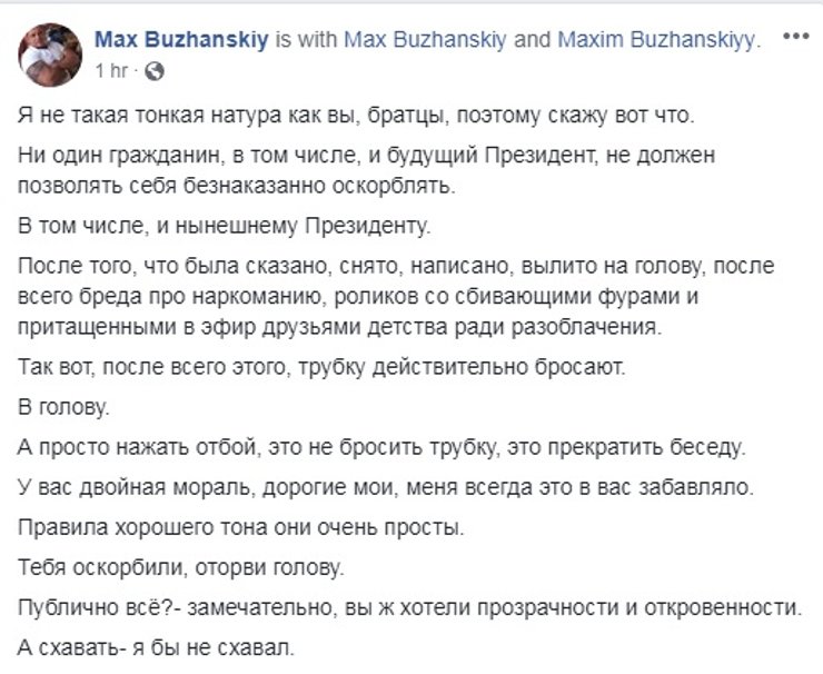 Однако, как оказалось, не все разделяют логику Макса Бужанского и не согласны, что кандидат в президенты, который вот-вот выиграет второй тур, может себя вести подобным образом.