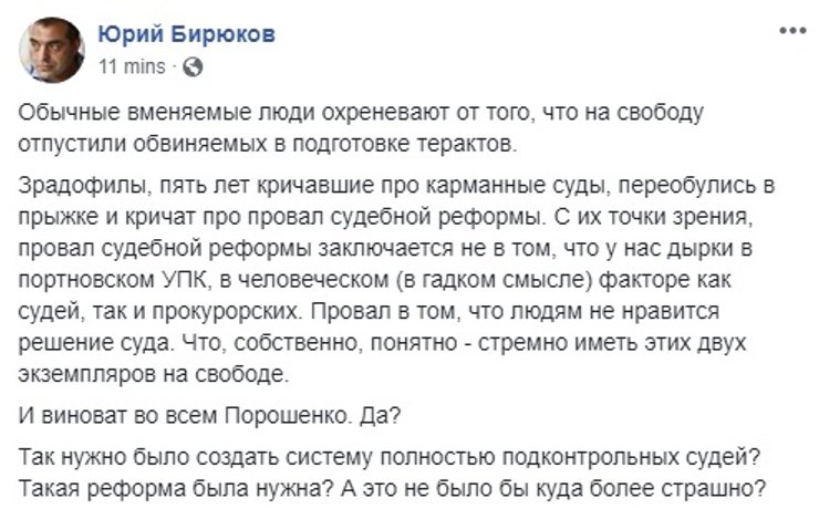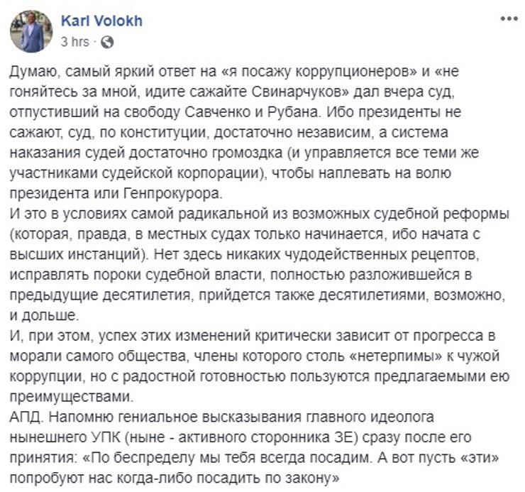Другие пользователи соцсетей из числа сторонников действующего президента обвинили в несовершенстве судебной системы Владимира Зеленского, Игоря Коломойского и Андрея Портнова, который во времена Януковича занимал должность замглавы АП и занимался вопросами судоустройства, а сейчас в своих постах в соцсетях высказывается в поддержку лидера студии "Квартал 95".