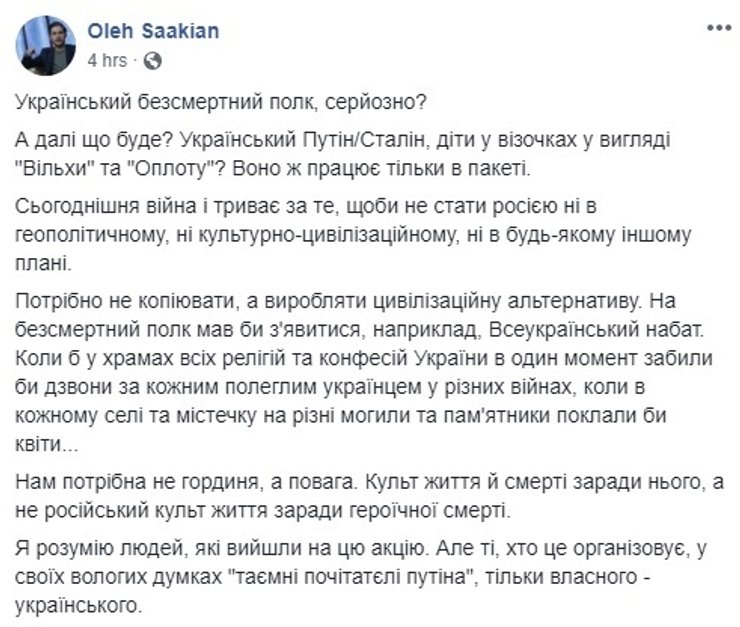 Пока на улицы выходили сторонники и противники проведения акций наподобие "Бессмертного полка", в соцсетях продолжались дискуссии на ту же тему.