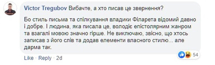 В соцсетях в подлинности письма засомневались, хотя в комментариях якобы Филарет (маловероятно, что 90-летний патриарх активен в Facebook) подтвердил, что он его написал.