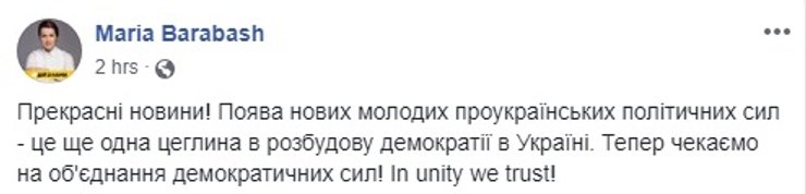 "Мы верим, что достоинство каждого украинца является незыблемым. Каждый имеет безусловное право на уважение. На достойную жизнь – благосостояние, безопасность и свободу. Мы будем защищать достоинство каждого украинца и от внешнего врага, и от старой политической системы", – сказал лидер новой партии.