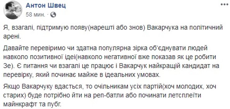 Внезапное решение певца идти в большую политику в соцсетях оценили неоднозначно. Часть пользователей увидели в походе Вакарчука на выборы новую надежду для Украины.