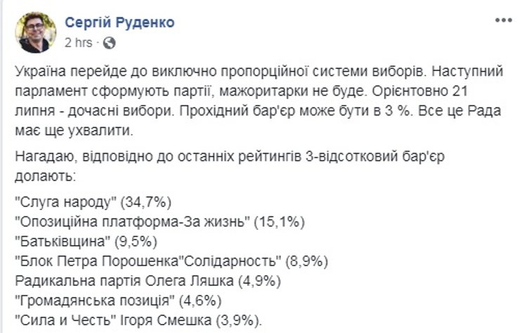 Во-первых, звучат вопросы пойдут ли сами депутаты на такие изменения, ведь 198 из них избраны как раз по мажоритарным округам (еще 27 округов находятся на оккупированных территориях, где выборы в 2014 году не проводились).