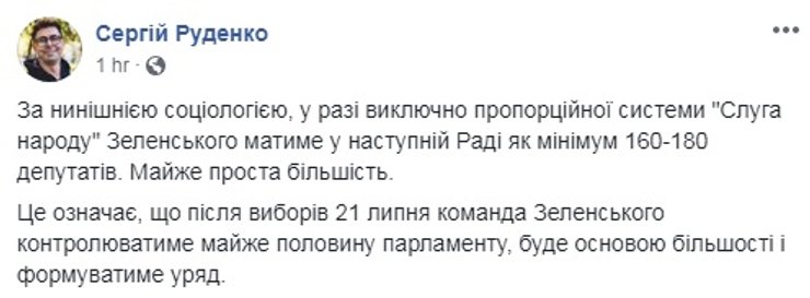 По словам сопредседателя группы "Видродження" Виталия Хомутынника, Зеленский предложил отменить мажоритарку (по которой сейчас избирается половина депутатов) и снизить проходной барьер для партий до 3%.