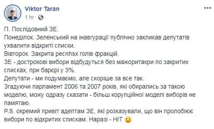 В связи с этим, в соцстях подметили, что сегодня по итогам консультаций ни со стороны президента, ни со стороны Верховной Рады не прозвучало ни слова об открытых списках, о необходимости введения которых вчера с парламентской трибуны заявлял Зеленский.