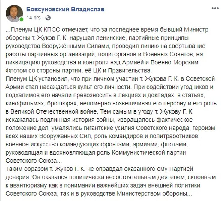 При этом пользователи напомнили, что личность Жукова обросла большим количеством мифов, под которыми скрывается образ "мясника". В качестве доказательств в соцсетях привели выдержки из воспоминаний ветеранов Второй мировой войны и даже фрагменты компартийных документов.