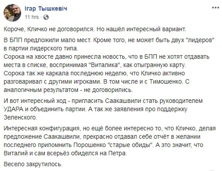 Тем временем в соцсетях уже заволновались, что подобный союз может навредить в равных степенях и Кличко, и Саакашвили.