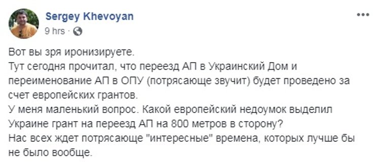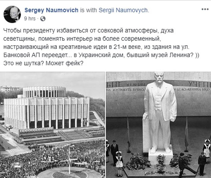 В АП объявили о планах перебраться в Украинский дом и сменить название на Офис президента. Когда начнется практическая реализация этого проекта пока неизвестно, но в соцсетях эту идею уже во всю обсуждают