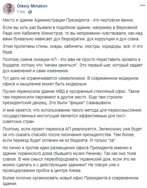 Слухи о том, что Администрация президента будет переезжать, ходили давно. Собственно, об этом заявлял и сам Владимир Зеленский еще во время предвыборной гонки. Тогда он говорил, что хочет "найти такое место в Киеве, а может, и возле Киева, чтобы там не было каких-то кортежей... Я хочу в целом избавиться от кортежей". Но вчера все слухи получили подтверждение. В АП заявили о планах сменить название на Офис президента и переехать в Украинский дом на Европейской площади.