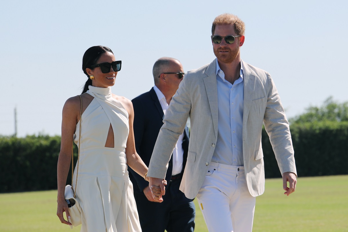 В мае 2024 года Меган и Гарри отправились в свой первый крупный зарубежный визит после отделения от монархии, получив приглашение в Нигерию от начальника штаба обороны страны. Во время поездки пара посетила специальный благотворительный матч по поло в городе Лагос, связанный со сбором средств для сборной страны по Invictus Games. Для мероприятия Меган надела платье-халтер с принтом бледного тона от дизайнера Джоанны Ортис.