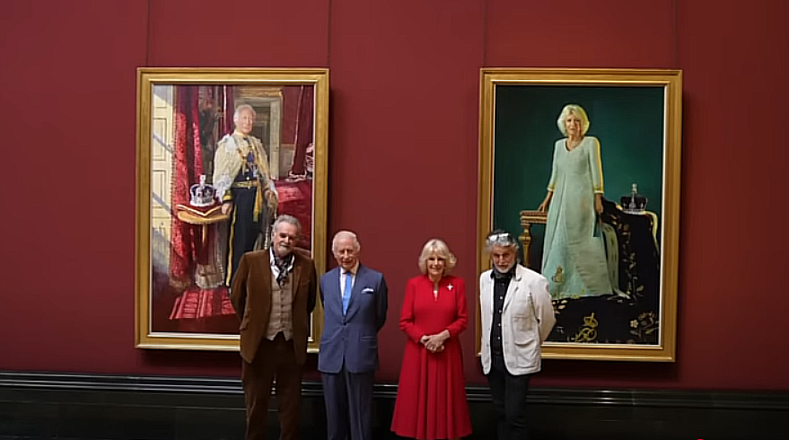Новые портреты короля Чарльза III и королевы Камиллы представлены в Центральном зале Национальной галереи по случаю второй годовщины коронации, которая состоялась 6 мая 2023 года.