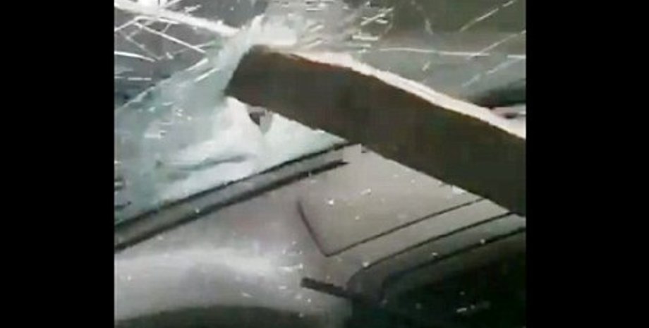 Женщина-водитель из США выложила в Интернет видеозапись, на которой двухметровая доска пробила ветровое стекло буквально в паре десятков сантиметров от ее головы.