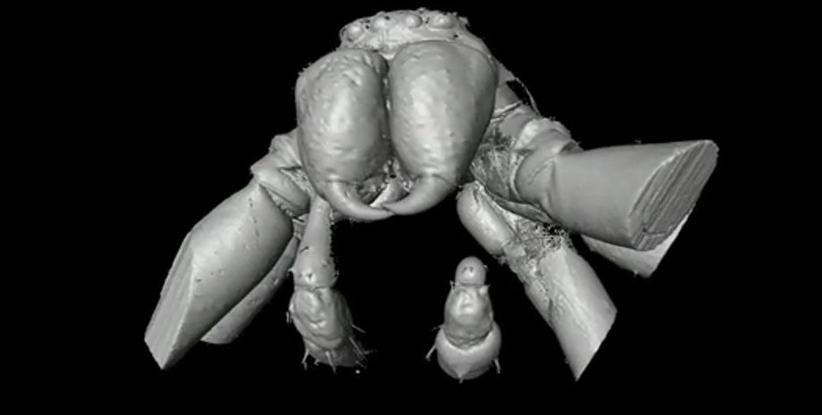 Обычными методами разглядеть содержимое этих фрагментов было невозможно, поэтому ученые использовали рентгеновскую компьютерную томографию с последующим компьютерным моделированием. В итоге авторам удалось восстановить трехмерный образ застрявшего в одном из фрагментов янтаря паука. Увидеть его можно здесь.