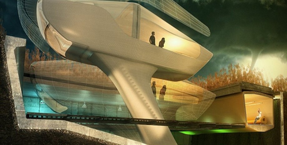 Как сообщает compulenta.ru, противоторнадное жилье по своему строению и вправду напоминает цветок: обитаемая часть ("бутон") расположена на поверхности, вспомогательные помещения, подобно корням, скрываются на небольшой глубине, а соединяет их "стебель" с гидравлическими механизмами, которые могут опускать внешнюю часть под землю. После этого ураган любой силы не страшен: к его приходу на месте поселения останется лишь пустая площадка.