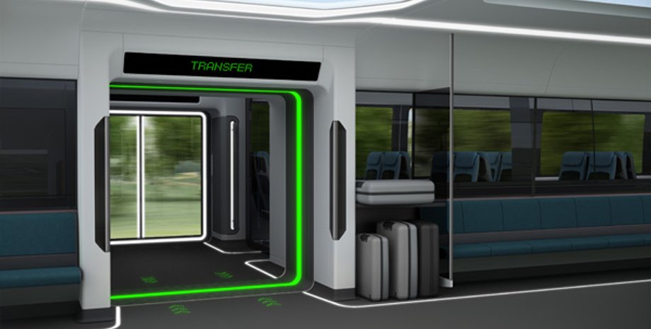 Британские дизайнеры предложили идею вспомогательных поездов-шаттлов, которые будут подъезжать к магистральной железнодорожной линии, стыковаться со скоростным поездом и на ходу пересаживать пассажиров