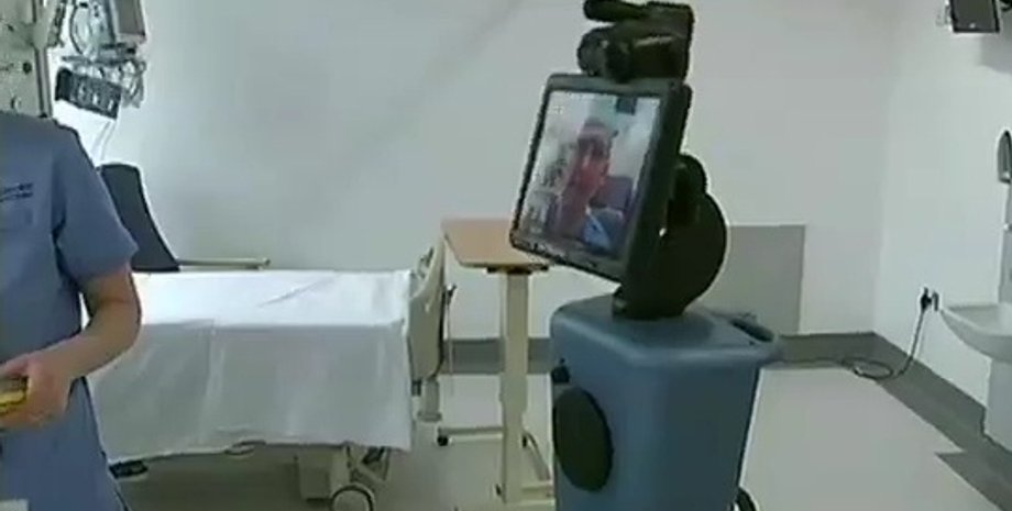Благодаря новому устройству врач на расстоянии может увидеть больного, посмотреть информацию о его жизненных показателях, а также услышать его дыхание и сердцебиение с помощью встроенного в робот фонендоскопа.