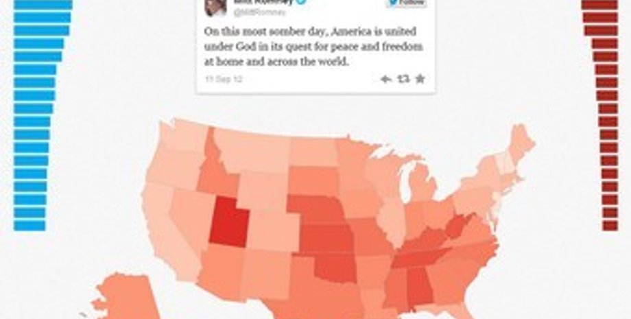 Согласно подсчетам Twitter, наиболее популярным твитом кандидата от демократов Барака Обамы стал следующий: "Ни одна семья не должна откладывать письмо о приеме в колледж из-за того, что у них нет денег". Самым цитируемым сообщением республиканца Митта Ромни стало его высказывание об 11 сентября.