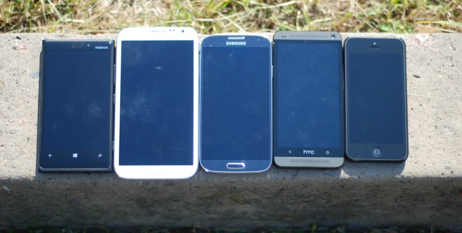 В распоряжении Фокус.ua оказались Apple iPhone 5, Samsung Galaxy S4, HTC One, Nokia Lumia 920 и Samsung Galaxy Note 2. Последний аппарат изначально не должен был фигурировать в обзоре, однако в силу ряда причин в редакцию не доехал Sony Xperia Z, поэтому его было решено заменить имеющимся в наличие самсунговским гаджетом.
