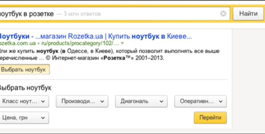 Как сообщили Корреспондент.biz в компании, теперь люди смогут использовать ряд сервисов сайтов прямо в поиске Яндекса - к примеру, если нужно приобрести ноутбук или выяснить судьбу своей посылки.