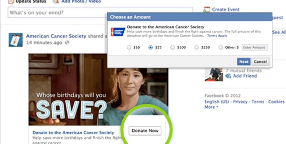 Крупнейшая в мире соцсеть Facebook запустила кнопку Donate Now, при помощи которой пользователи могут отправлять пожертвования благотворительным организациям