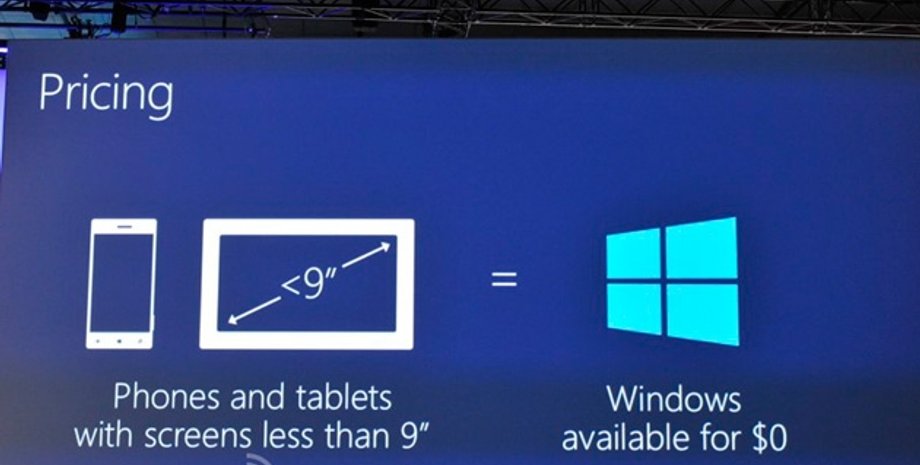 На конференции Build 2014 вместе с анонсом Windows Phone 8.1 и Windows 8.1 Update компания сообщила, что отныне Windows станет бесплатной для всех смартфонов и планшетов с диагональю менее 9 дюймов и устройств класса интернет вещей