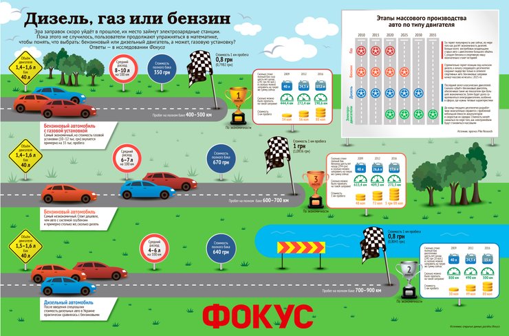 Эра заправок скоро уйдет в прошлое, их место займут электрозарядные станции. Пока этого не случилось, пользователи продолжают упражняться в математике чтобы понять, что выбрать: бензиновый или дизельный двигатель, а может, газовую установку? Ответы на эти вопросы – в исследовании Фокуса