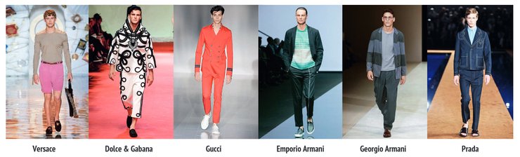 Запомнилась ностальгическими джинсовыми костюмами, яркими жакетами от Gucci и сложными конструкциями от Dolce & Gabana.