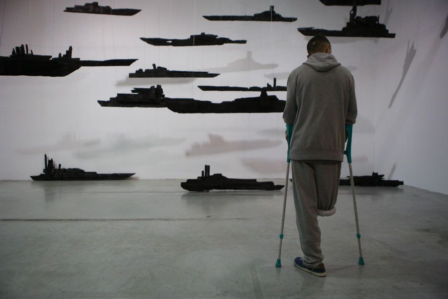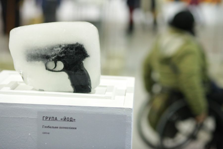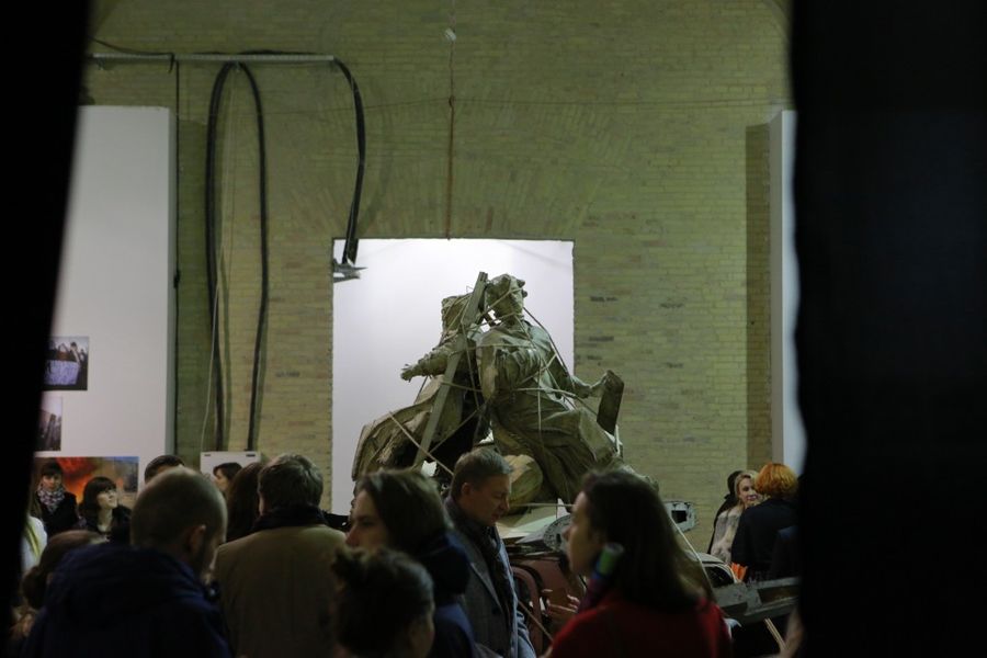 На выставке хватает рефлексий по поводу происходящего в стране и за ее пределами. Несколько залов отданы под проблемы Крыма. В каждом проекте — будь то местная живопись или заграничные инсталляции — война. Иногда изображенная с такой дотошностью, что чувствуешь себя погруженным в ленту новостей. Тот, кто видит задачу искусства в точном отображении времени, найдет много пищи для ума. Те, кто занят в первую очередь душевными травмами, поищите в рядах молодняка проекты "Безповоротньо" и "Смена караула". Мало не покажется.
