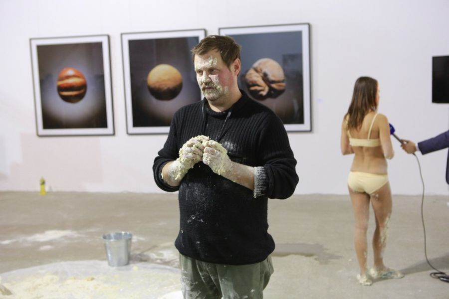В обе стороны от павильона Кано раскинулись украинские классики и современники. Молодежь возрастом до 35 сослали ближе к выходу. Кому интересно свежее слово в отечественном контемпорари, лучше начинать с конца. Там много любопытного. От помеси Йозефа Бойса с Гаврилой Лубниным в "Парадном сервизе для царя Народной республики" Дарьи Кольцовой до выносящего мозг "гипсового" видео группы "Элементы действительности". Отдельный респект команде "М"АРТ + 1", выполняющей мирное и необходимое дело. Их проект называется "Другой Донбасс", и он таки про другой Донбасс. В котором помимо терриконов и уголовников хватает пейзажной красоты и талантливых людей.