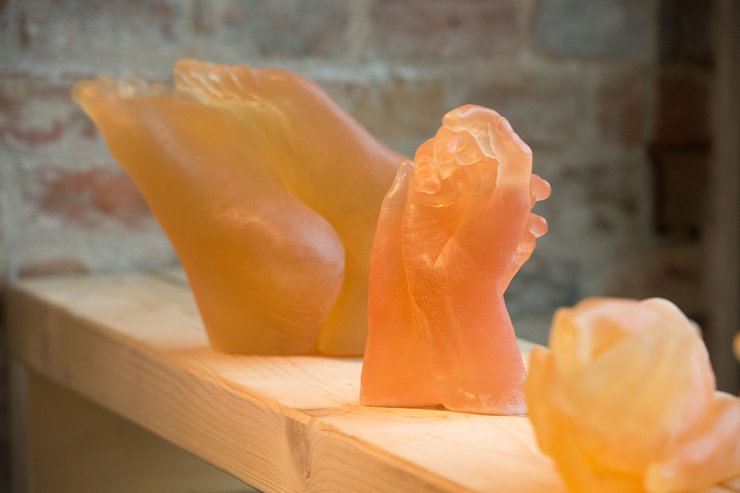 Специально для проекта Through Maidan and Beyond Мария Куликовская создала скульптуры из мыла. Это слепки частей тела. Ранее она уже работала с этим материалом — для выставки в Донецком культурном центре "Изоляция"