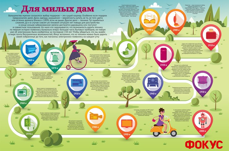 Стиль жизни Почему лучший подарок женщине – это техника. Инфографика 07.03.2015 в 09:59 0 Поделиться: поделиться в Facebook отправить в Telegram отправить в X отправить в Viber отправить в Whatsapp отправить в Messenger отправить в LinkedIn Большинство мужчин согласится: выбор подарков – это сущий кошмар. Особенно если подарок предназначен даме. Духи, одежда украшения – вероятность купить что-то не то, близка к 100%. Другое дело – техника. Тут ошибиться сложнее Нажмите для увеличения Инфографика: Владимир Хомяков, Елизавета Букреева Поделиться: отправить в Telegram поделиться в Facebook поделиться в X отправить в Viber отправить в Whatsapp отправить в Messenger отправить в LinkedIn Теги: гаджеты история техника подарок Читайте нас в: Читайте в Telegram Читайте в Facebook Читайте в X Читайте в Google news Читайте в Viber Читайте в LinkedIn