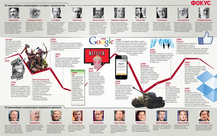 Величайшие инноваторы в истории человечества, без которых мы бы до сих пор жгли лучину, отправляли письма друг другу с помощью почтовых голубей и производили вычисления на счетах