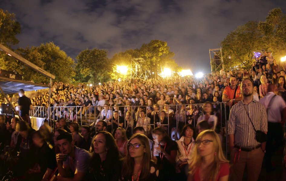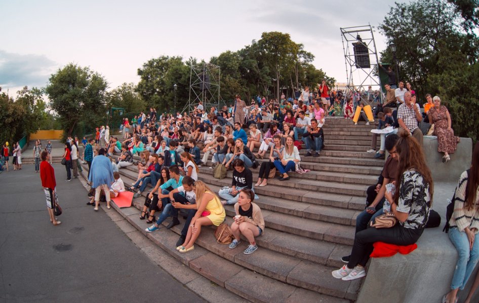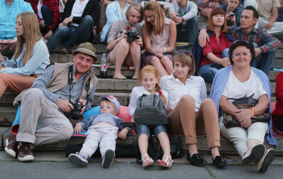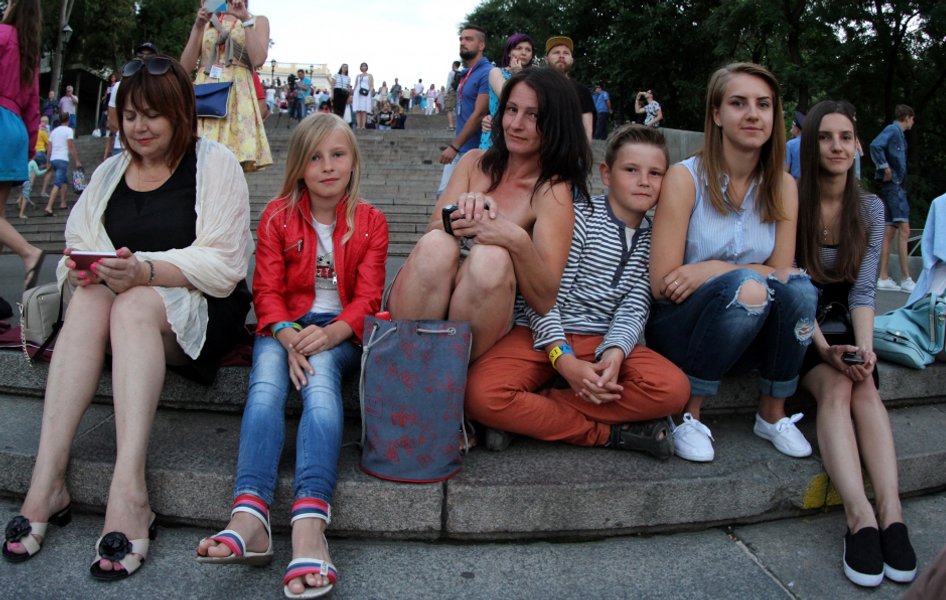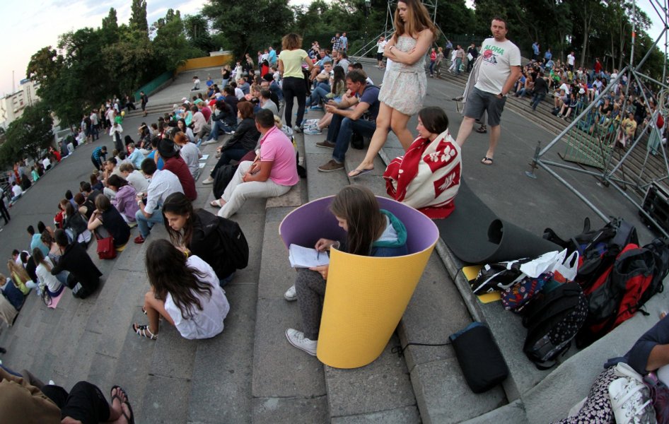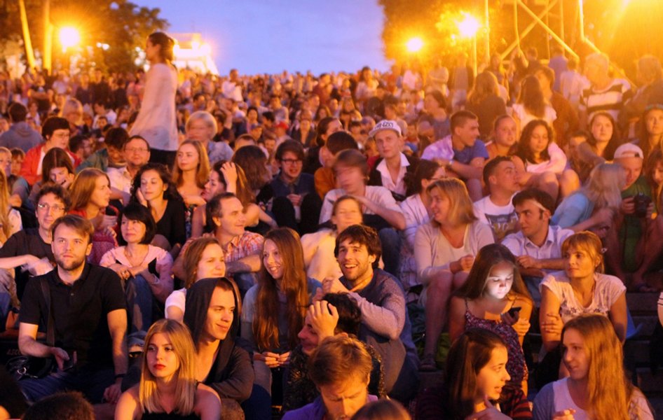 Традиционные показы шедевров мирового кинематографа на Потемкинской лестнице считаются самыми посещаемыми событиями Одесского международного кинофестиваля. Тот случай, когда словосочетание "просветительская миссия" не пустой звук. 15 тысяч человек, которые слушают музыку не самого массового композитора Майкла Наймана и смотрят немое кино 1929 года Дзиги Вертова – явление уникальное. Возле меня сидели дедушка на костылях, афроамериканец, который ни бум-бум по-нашему, и сильно беременная барышня с мужчиной Алексеем. За время показа она к нему так обратилась раз сто – так что даже я запомнила.