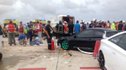 По словам очевидцев, одно из колес автомобиля выехало за трассу и водитель потерял управление. Автомобиль на большой скорости снес ограждение и врезался в толпу зрителей.