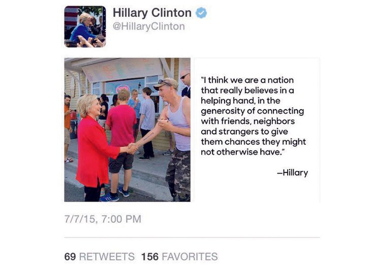 Кому бы пригодился: кандидату в президенты США Хиллари Клинтон, которая поделилась фотографией встречи с избирателями и подписала ее: "Я думаю, что мы — нация, которая действительно верит в руку помощи, в великодушие к нашим друзьям". При этом на снимке Клинтон пожимает руку парню со стилизованной нацистской татуировкой white ("белый").