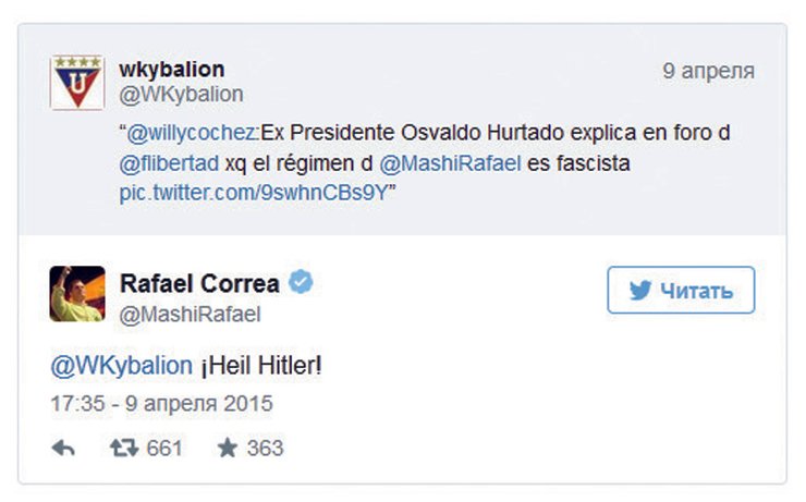 Кому бы пригодился: президенту Эквадора Рафаэлю Корреа, который на обвинения в том, что его режим "типично фашистский", ответил твитом "Хайль Гитлер". С краткостью тут все в порядке, а вот основная идея вызвала у подписчиков недоумение.