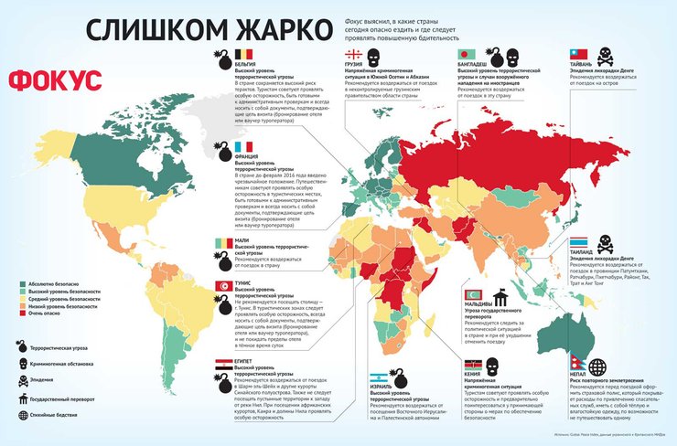 Фокус выяснил, в какие страны сегодня опасно ездить и где надо проявлять повышенную бдительность
