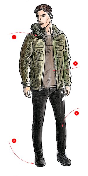 1. Отстегивающийся капюшон и синтапоновый утеплитель защитят вас от холода, дождя и ветра, ну а когда распогодится, теплая куртка легко превратится в легкий кожаный пиджак. Стоит выбирать кожу с водоупорным напылением, такие куртки стоят на 40–50% дороже, зато служат гораздо дольше и выдерживают сильный дождь.