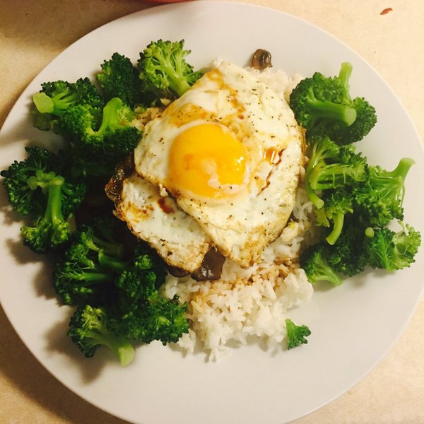 Если говорить серьезно, у меня нашлось время даже на приготовление здоровой пищи. На фото — жареный рис.