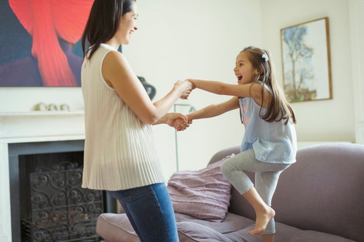 Будьте на одном уровне с детьми и в психологическом плане. Делайте глупости, хоть иногда. Танцуйте, пойте, обнимайте любимые DVD-диски, играйте в прятки. Список вариантов бесконечен. Выбирайте любой — главное, чтобы это помогло вам хотя бы на время оставить позади собственную инертность. "Детское представление об удовольствии может не совпадать с нашим, родительским, но если, несмотря на это, в нем присутствует элемент игры, родитель должен продемонстрировать готовность присоединиться. Не стесняйтесь веселиться вместе, и в глазах ребенка вы будете самым лучшим родителем на свете", — уверяет доктор Хэлси.