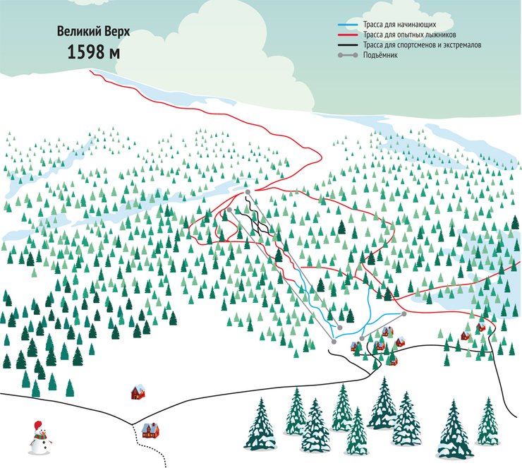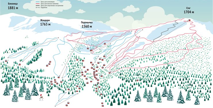 Нижняя станция канатки остается позади, и кресло подъемника, чуть покачиваясь, поднимает тебя выше и выше. Снег, поляны и перелески, вершины елей под ногами — и наконец вершина. Ты спрыгиваешь с кресла подъемника, проверяешь крепления, первый раз отталкиваешься палками — и все быстрее несешься в искрящуюся снежную даль. Скорость, ветер, снег, адреналин…