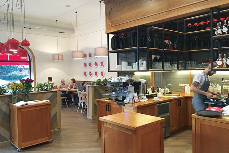 Даже обычные вареники, поданные в современном интерьере, воспринимаются по-другому. Украинские рестораторы поездили по миру и освоили новые ресторанные стандарты вместо надоевшего "шароварного" формата. Открытый бар, лампы Эдисона, высокая посадка, общие столы, современная посуда — все это придает новизну родной украинской кухне.