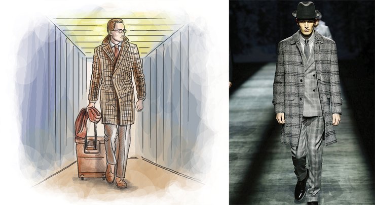 Классический крой — самый очевидный выбор для деловой встречи. Можно, конечно, надеть однотонное пальто, но мы рекомендуем клетку. Во-первых, она в моде, и окружающие сразу поймут, что вы в курсе последних тенденций и идете в ногу со временем. Во-вторых, этот принт хоть и вписывается в рамки делового дресс-кода, но позволяет отойти от канонов ультраконсервативного классического костюма и сделать одежду выражением индивидуальности. Так вы покажете партнерам, что готовы играть по правилам, но точно знаете, чего хотите. Клетчатые пальто есть у всех солидных брендов, специализирующихся на мужской деловой одежде. Особенно много их у Brioni и Antonio Marras.