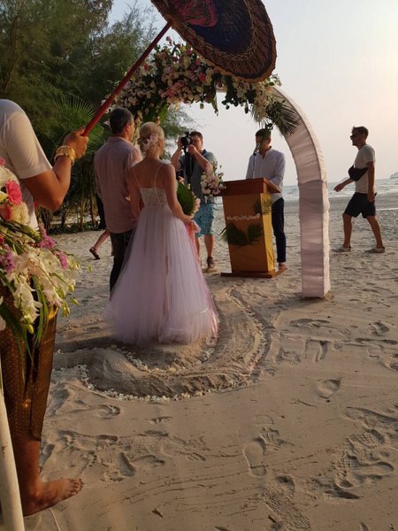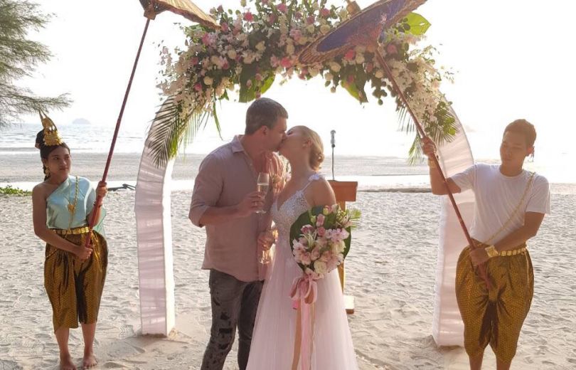 Отмечается, что брачная церемония проходила на украинском языке на морском побережье острова Ко Чанг (остров Слона).