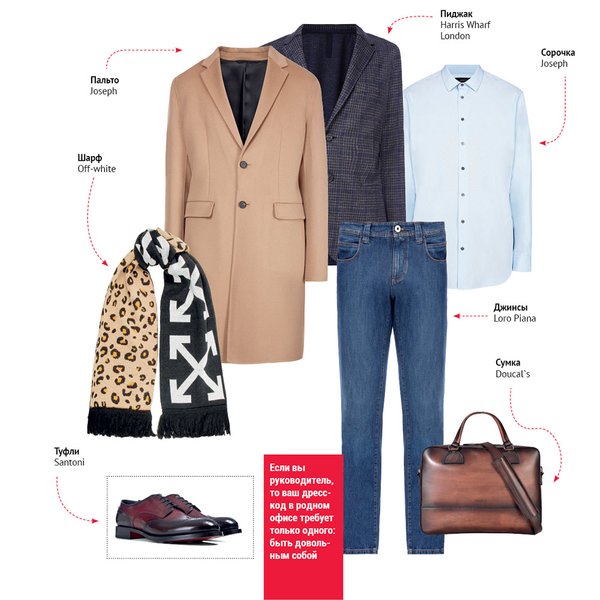 Этот ансамбль сложился давно, его уже по праву называют классическим. Хорошо сидящие джинсы, дорогая рубашка (сорочка, мы помним, это опять она) и пиджак — вполне возможно не однотонный. Твидовый, с замшевыми "заплатами" на локтях или ультрамодный в этом сезоне клетчатый. Этот образ предполагает внимание к деталям и аксессуарам. Непременные, ультимативно обязательные его атрибуты — дорогая кожаная обувь и хороший, а лучше отличный деловой портфель. Тут не нужно мелочиться и идти на компромиссы — именно эти элементы показывают истинный статус человека в джинсах и рубашке без галстука.