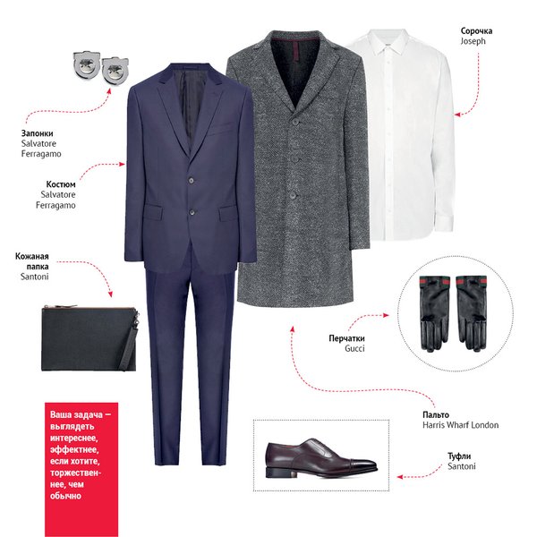 Ваша задача — выглядеть интереснее, эффектнее, если хотите, торжественнее, чем обычно. Мы не знаем, зачем вам это нужно, — возможно, вы хотите прочитать доклад на конференции. Или провести встречу с важным деловым партнером. Или, чем черт не шутит, очаровать эмансипированную независимую женщину нового типа прямо на первом свидании. Или просто быть сегодня особенно довольным собой (то есть и хорошо одетым тоже).